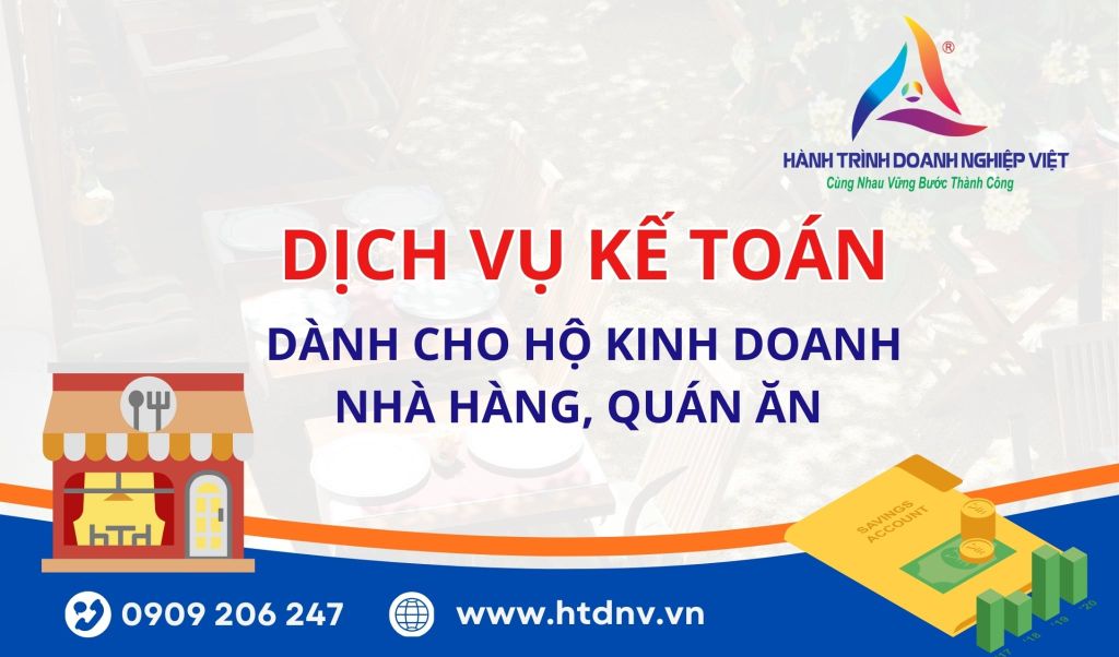 Lưu ý: Giá trên là tham khảo, ưu đãi đặc biệt cho hộ kinh doanh nhà hàng/quán ăn có doanh thu khoán hoặc quy mô nhỏ. Cam kết không phát sinh chi phí ẩn. Chi tiết bảng giá đầy đủ xem tại: https://htdnv.vn/blogs/ke-toan-thue/gia-dich-vu-ke-toan